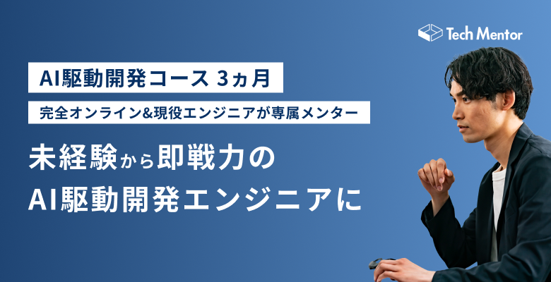 - **「Tech Mentor」は、株式会社ifが運営するオンライン完結型のプログラミングスクールです。** - 生成AIの急速な普及に対応し、ビジネス課題を解決できるAI活用人材を育成することを狙いとした講座です。Webサービスや業務アプリケーションに生成AIを組み込み、企画から設計・実装までを自力で行えるスキルを3ヶ月で習得します。 - 完全オンラインで受講可能で、現役Webエンジニアのプロメンターが専属で毎週定期メンタリングを実施します。また、チャットで質問し放題です。 - 個別対応でサポートしているため、最低催行人数は1名、人数制限は設けず講座を開講します。 - 学習の流れは次のとおりです。 - ステップ1: AI駆動開発入門 - ステップ2: プロンプティング・OpenAI API - ステップ3: オリジナルアプリ要件定義~開発・テスト - ステップ4: オリジナルポートフォリオアプリ制作 - **申し込みの流れ:個別説明会にご参加後、入会案内をいたします。入会後検討中の場合、まずは個別説明会への参加をお願いいたします。*