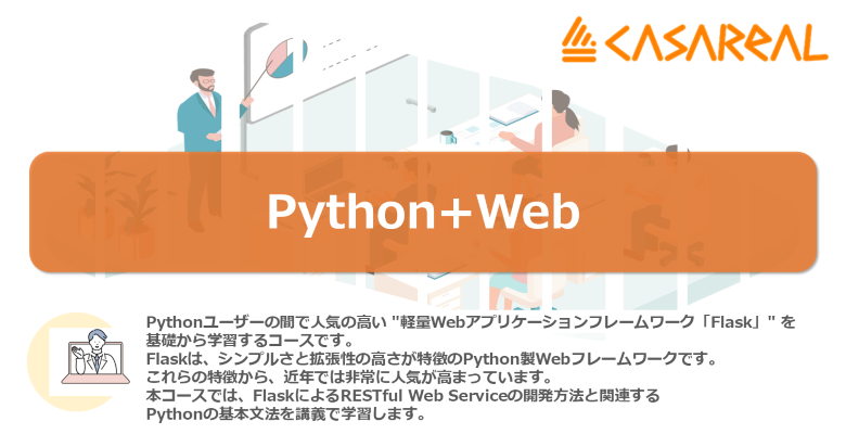 Pythonユーザーの間で人気の高い 軽量Webアプリケーションフレームワーク「Flask」 を基礎から学習するコースです。Flaskは、シンプルさと拡張性の高さが特徴のPython製Webフレームワークです。これらの特徴から、近年では非常に人気が高まっています。 本コースでは、FlaskによるRESTful Web Serviceの開発方法と関連するPythonの基本文法を講義で学習します。 シンプルなWebアプリケーションを作成することから初め、データベースへのアクセス、ブループリントによるアプリケーションの分割、エラーハンドリング、バリデーションまでを学習することで、基本的な機能が一通りそろったRESTful Web Serviceを開発できるようになります。 またSQLAlchemyやPydanticといったライブラリなども併せて学習できますので、より実践的な開発を体験できます。 シンプルな文法と豊富なライブラリによるRESTful Web Service開発を、是非この機会に体験してみてください。 <学習目標> ■ Flaskを利用してRESTful W